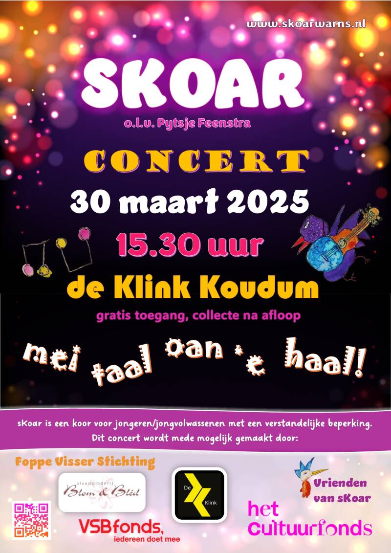 Het schilderij dat op de homepage staat, is gemaakt door ons koorlid Miranda. Naast zingen is schilderen haar grote passie. Op het schilderij wordt onze dirigente Pytsje afgebeeld; dit is de middelste vogel. Zelf is ze het roze vogeltje dat naar Pytsje toe zingt. Ze heeft meerdere vogels geschilderd en ook de muzikanten staan erop. Ze heeft veel vrolijke kleuren gebruikt; dit past goed bij sKoar. Wij vinden het een prachtig schilderij!